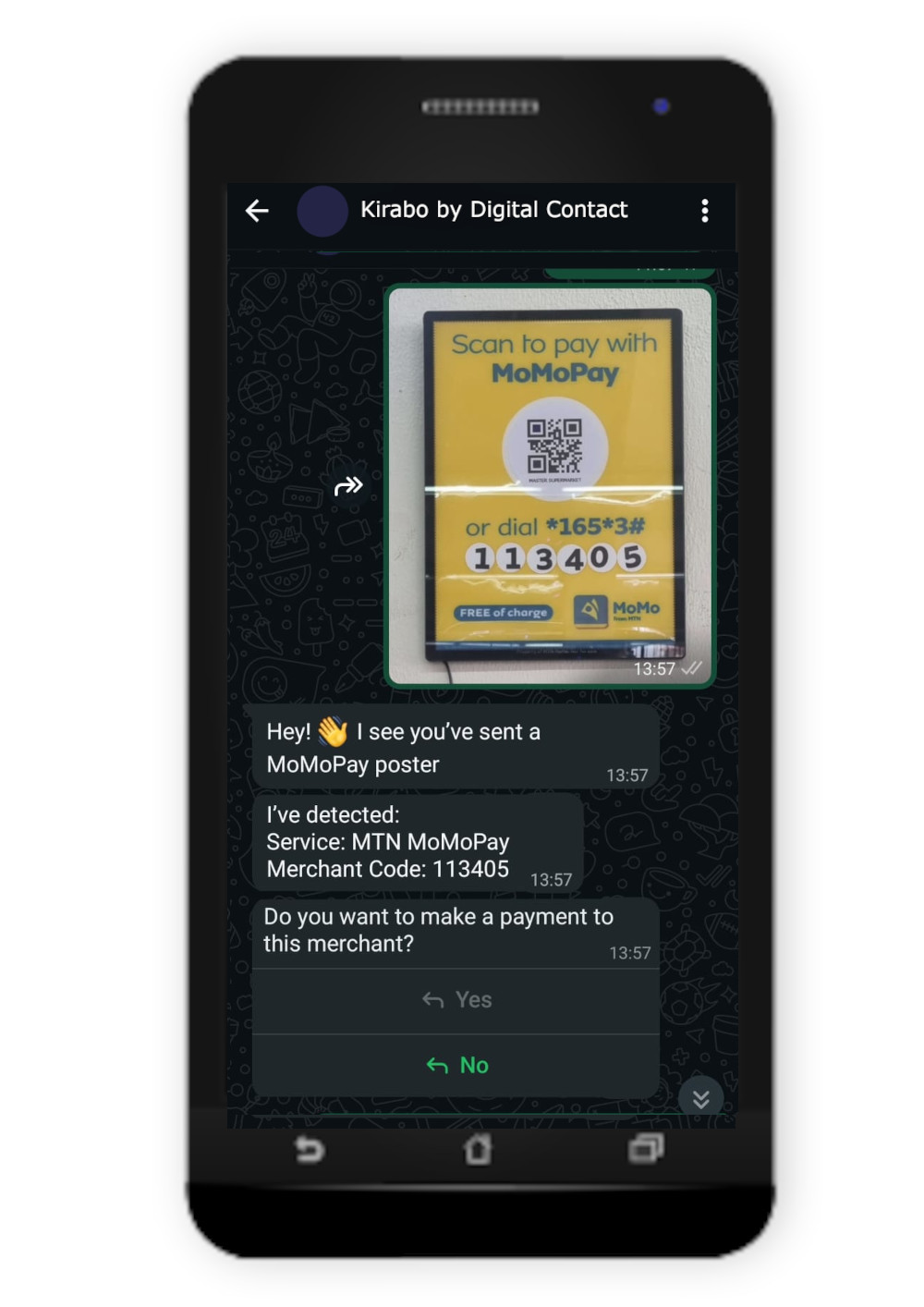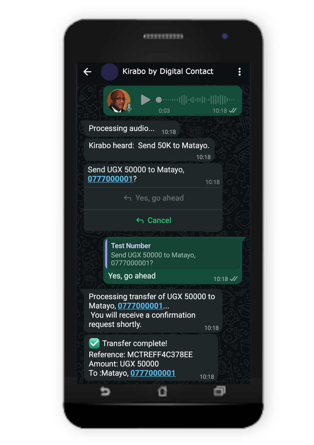 Meet Kirabo — your smart money assistant that speaks your language. Send money, collect payments, and pay bills on WhatsApp by chatting naturally. No complicated steps. No special commands. Just tell Kirabo what you want to do, and she handles the rest.